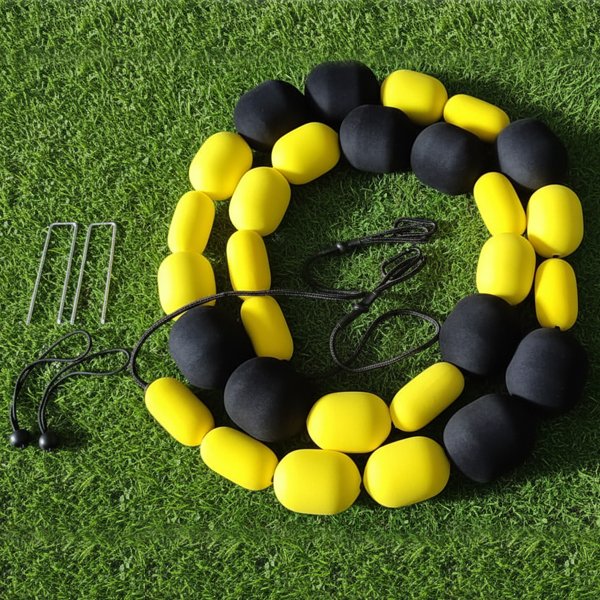 Single Line Ball Deflector measuring 3.6 m (12 ft) in length, specially designed to improve reflexes, reactions, and hand-eye coordination across a wide range of sports. Equipped with 20 floats — 4 large and 16 small — it creates unpredictable ball movement and unlimited deflection angles, forcing players to adjust quickly and sharpen their response time. Ideal for goalkeeper training, baseball and cricket fielding drills, hockey reactions, and general agility work, it helps simulate real-game deflections and rebounds.